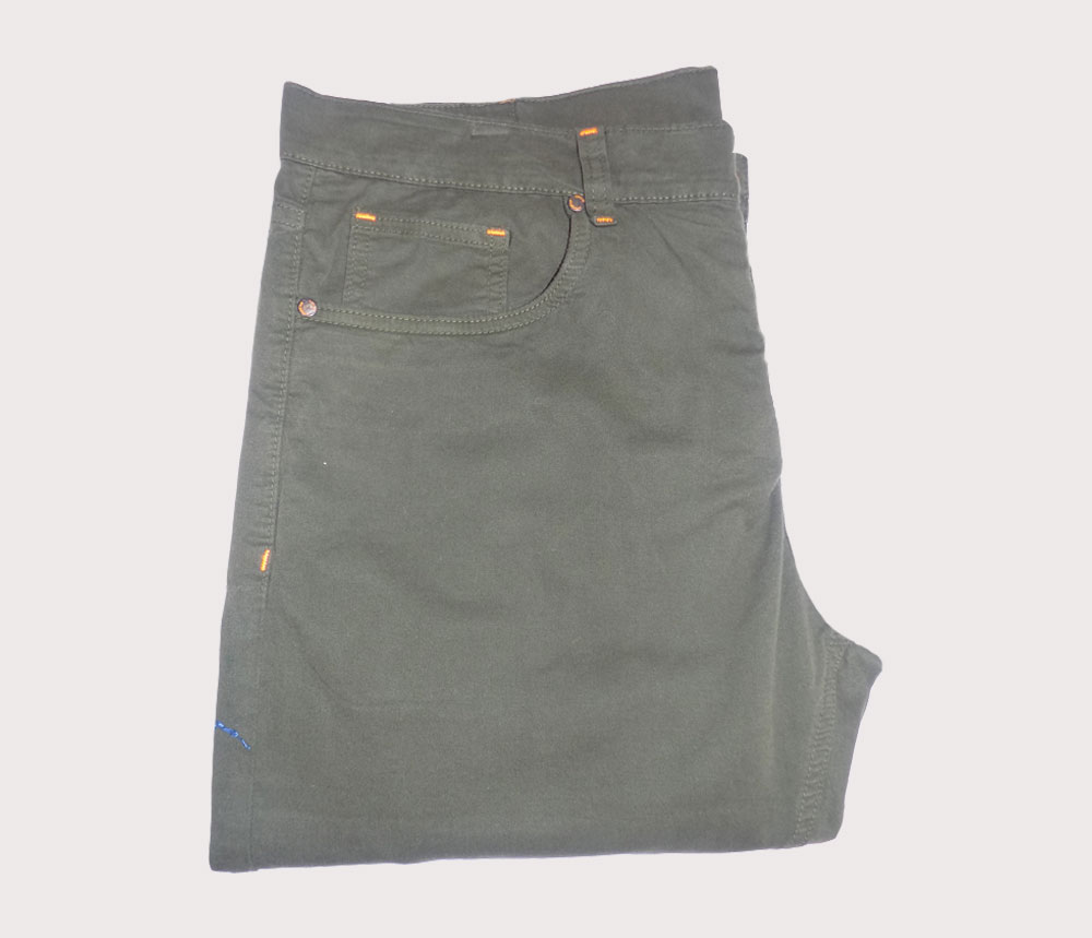 Tipo: Sarga 2/1 Composición: 98% alg.; 2% ____. Peso: 6.20 oz. Ancho: 1.57 mts.